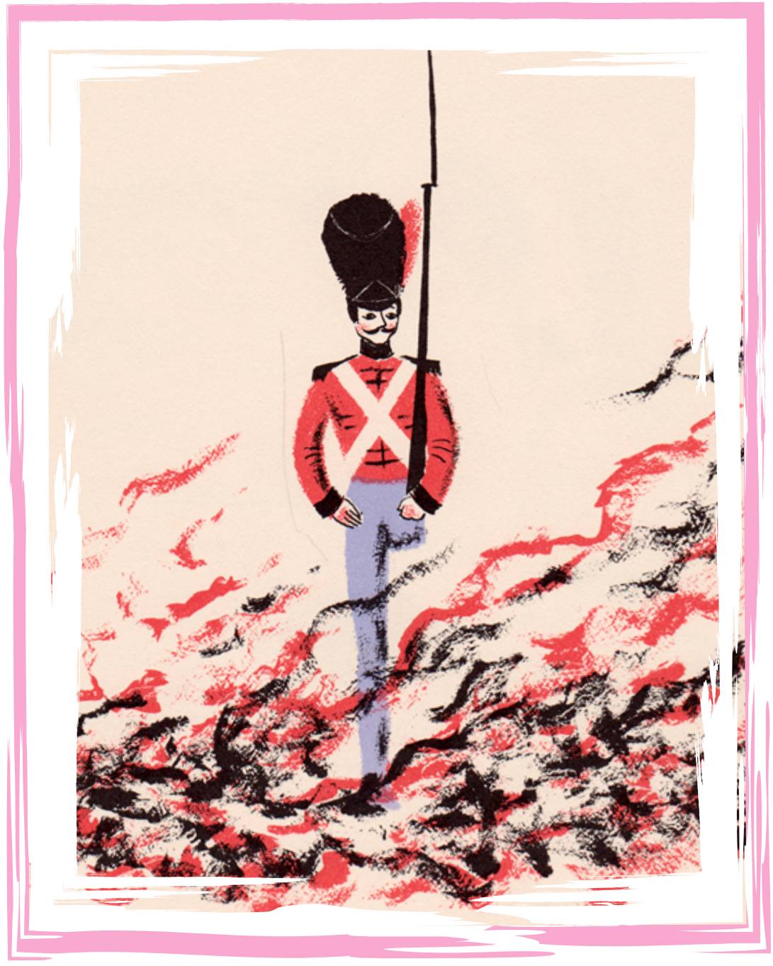 "Farewell, warrior! ever brave,Then the paper boat fell to pieces, and the soldier sank into the water and immediately afterwards was swallowed up by a great fish. Oh how dark it was inside the fish! A great deal darker than in the tunnel, and narrower too, but the tin soldier continued firm, and lay at full length shouldering his musket. The fish swam to and fro, making the most wonderful movements, but at last he became quite still. After a while, a flash of lightning seemed to pass through him, and then the daylight approached, and a voice cried out, "I declare here is the tin soldier." The fish had been caught, taken to the market and sold to the cook, who took him into the kitchen and cut him open with a large knife. She picked up the soldier and held him by the waist between her finger and thumb, and carried him into the room. They were all anxious to see this wonderful soldier who had travelled about inside a fish; but he was not at all proud. They placed him on the table, and—how many curious things do happen in the world!—there he was in the very same room from the window of which he had fallen, there were the same children, the same playthings, standing on the table, and the pretty castle with the elegant little dancer at the door; she still balanced herself on one leg, and held up the other, so she was as firm as himself. It touched the tin soldier so much to see her that he almost wept tin tears, but he kept them back. He only looked at her and they both remained silent. Presently one of the little boys took up the tin soldier, and threw him into the stove. He had no reason for doing so, therefore it must have been the fault of the black goblin who lived in the snuff-box. The flames lighted up the tin soldier, as he stood, the heat was very terrible, but whether it proceeded from the real fire or from the fire of love he could not tell. Then he could see that the bright colors were faded from his uniform, but whether they had been washed off during his journey or from the effects of his sorrow, no one could say. He looked at the little lady, and she looked at him. He felt himself melting away, but he still remained firm with his gun on his shoulder. Suddenly the door of the room flew open and the draught of air caught up the little dancer, she fluttered like a sylph right into the stove by the side of the tin soldier, and was instantly in flames and was gone. The tin soldier melted down into a lump, and the next morning, when the maid servant took the ashes out of the stove, she found him in the shape of a little tin heart. But of the little dancer nothing remained but the tinsel rose, which was burnt black as a cinder.
